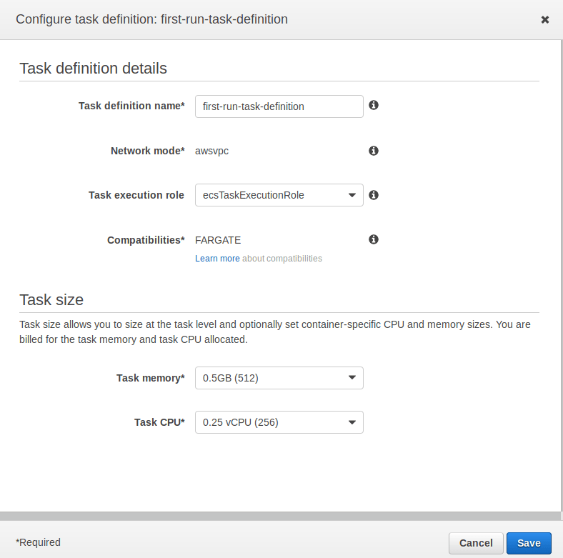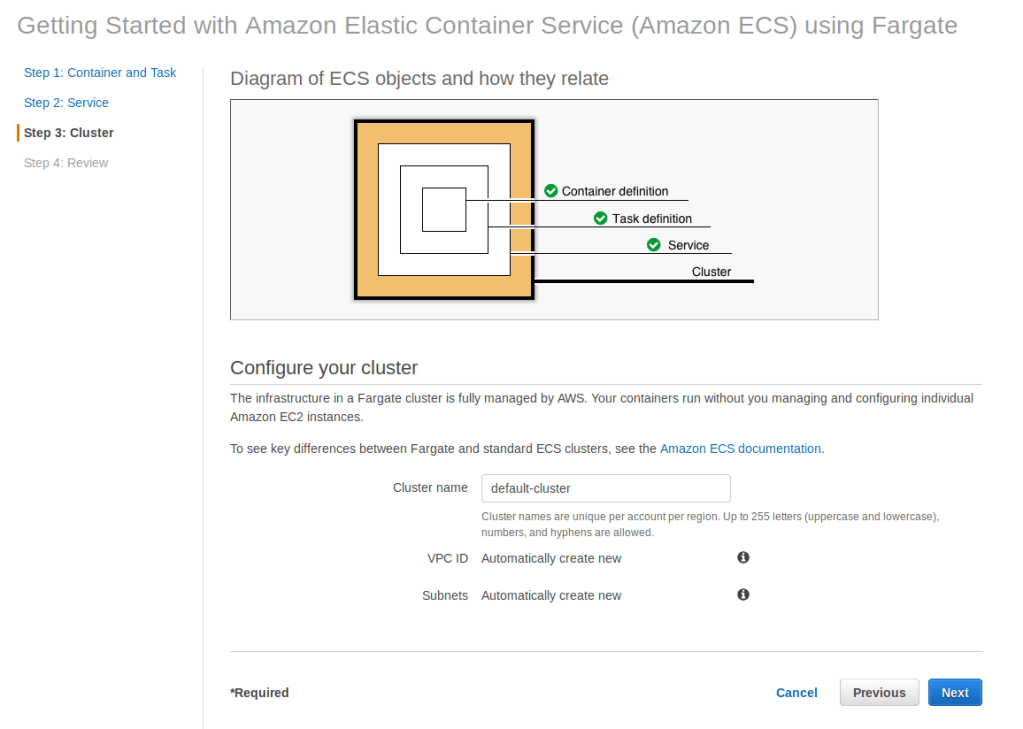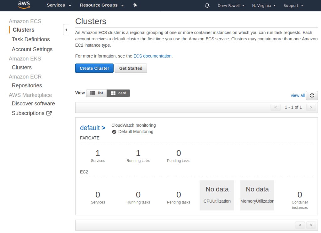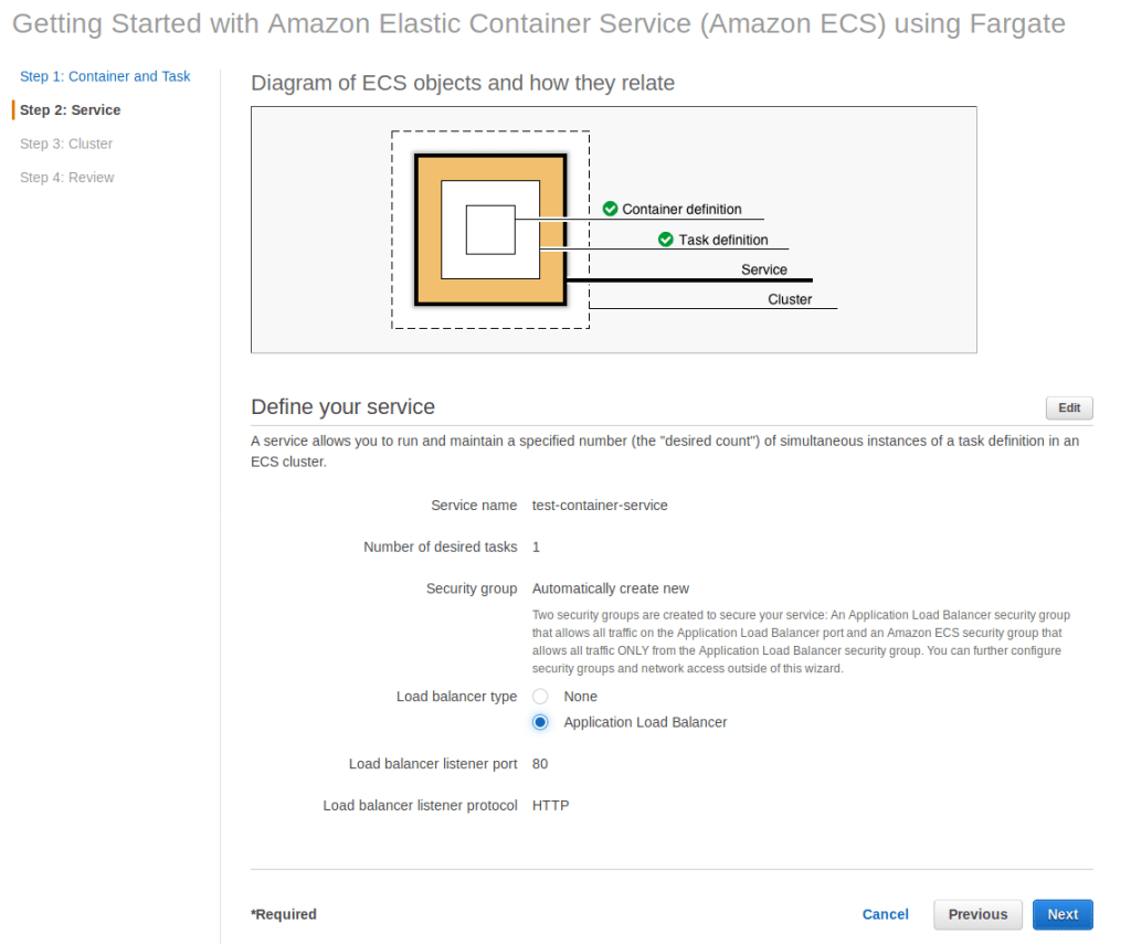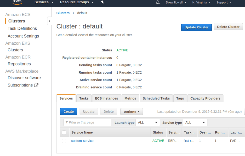 Note that there are several hardcoded values here. If you have trouble, double check the cluster name, service name, container image name, and task definition name.