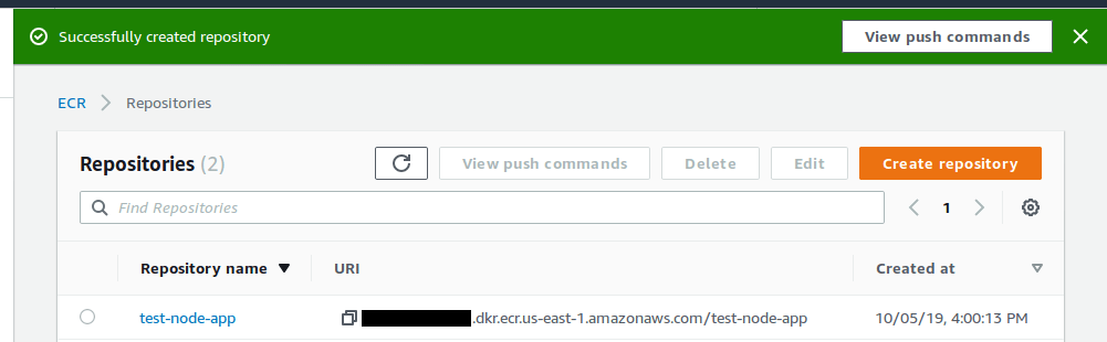 If you go to the ECR repo, you’ll see that it was uploaded.