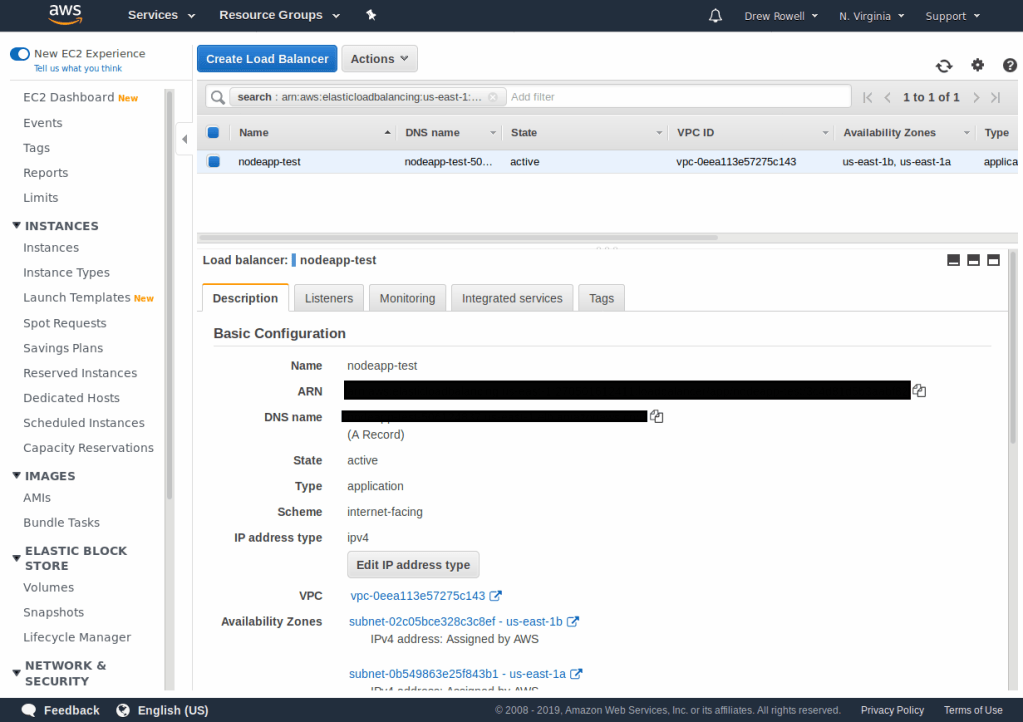 And if you open up the load balancer in the AWS console, you’ll see a DNS name that you can use to view the new page.